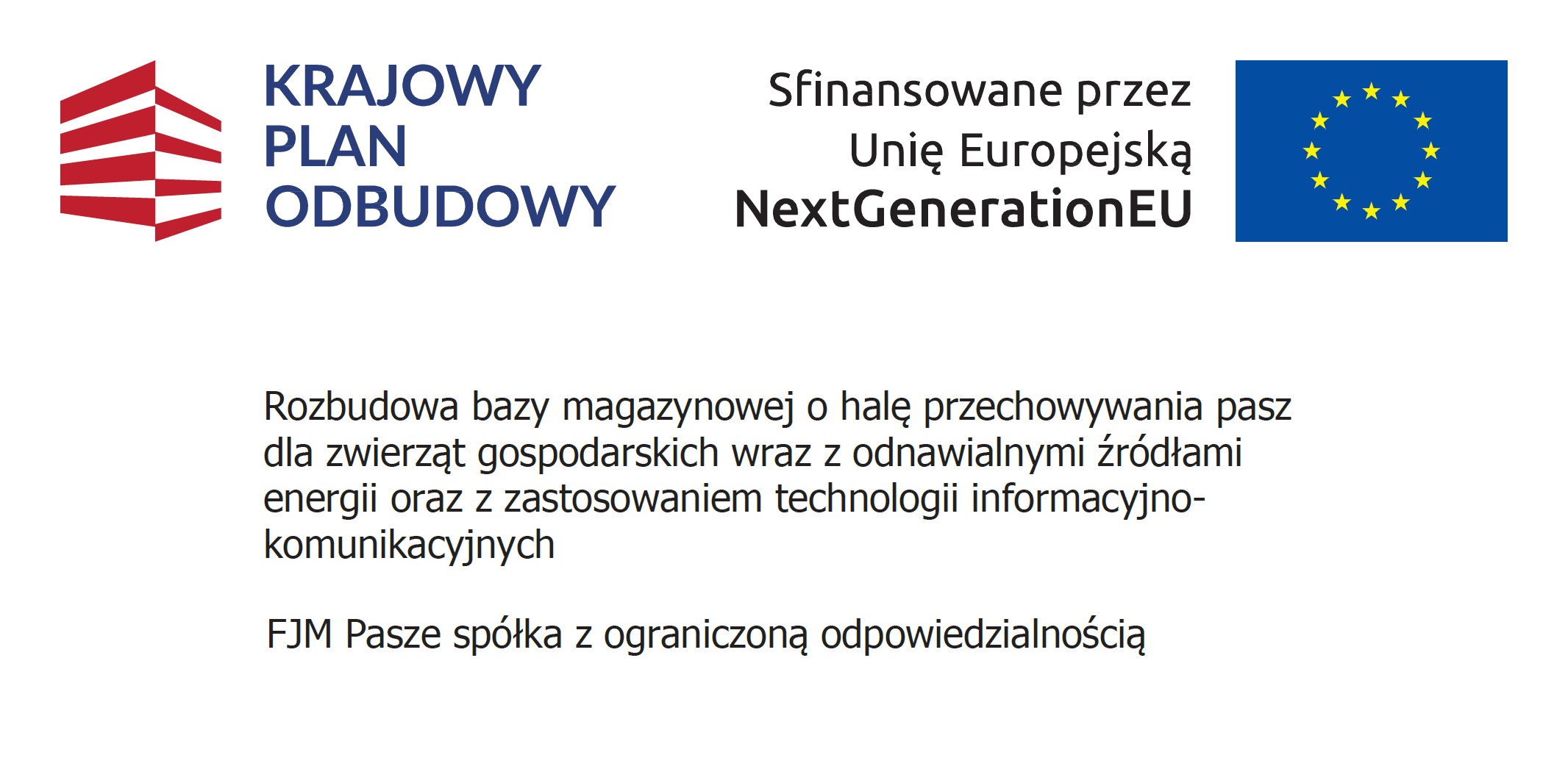 Cel projektu: „Wzrost konkurencyjności przedsiębiorstwa poprzez uruchomienie zakładu do produkcji pasz wolnych od GMO dla zwierząt gospodarskich oraz realizacja inwestycji mających na celu ochronę środowiska oraz przeciwdziałanie zmianom klimatu".